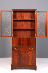 Wunderschöner Englischer Sekretär Büro Aufsatzsekretär Antik 60s Mahagoni Vitrinen Schrank UK